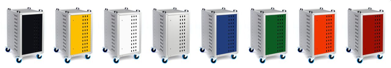 Luokkien tyylikäs 20 yksikön latausratkaisu. Säädettävät lokerot, vankka lukittavat kuori, erinomaiset ja selkeät kaapelitiet. Kaksi alueinen lataus. Isot kumipäällysteiset pyörät takaavat helpon liikuteltavuuden.